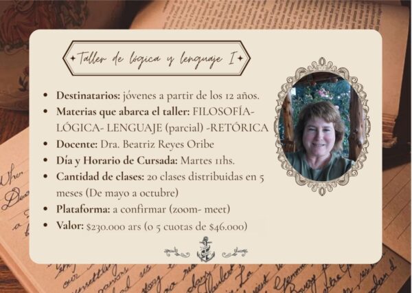 El taller Lógica y Lenguaje I acompaña a los alumnos en el inicio o profundización de la etapa de la lógica, promoviendo la reflexión sobre el lenguaje, el pensamiento y la realidad desde una sólida base de filosofía realista. A partir de la lectura atenta de obras literarias, los estudiantes desarrollan una comprensión más profunda del lenguaje y de los procesos del pensamiento.